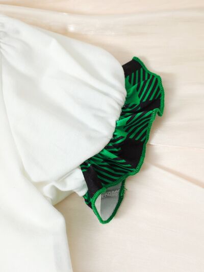 Lucky Clover Round Neck Top and Plaid Pants Set