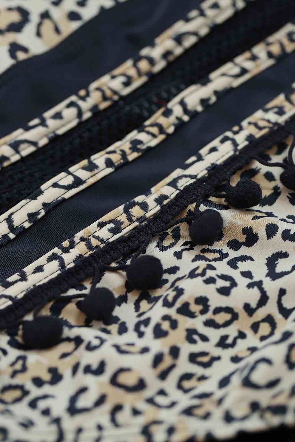 Printed Pompom Detail Halter Neck Two-Piece Bikini Set