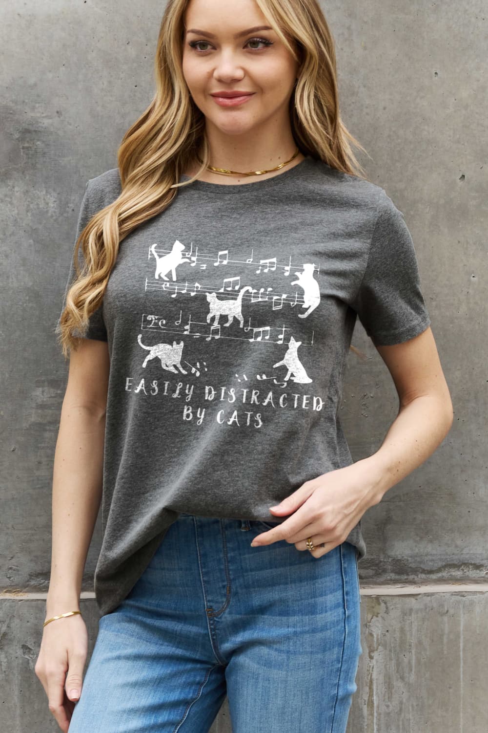 Simply Love Full Size EASILY DISTRACTED BY CATS Graphic Cotton Tee